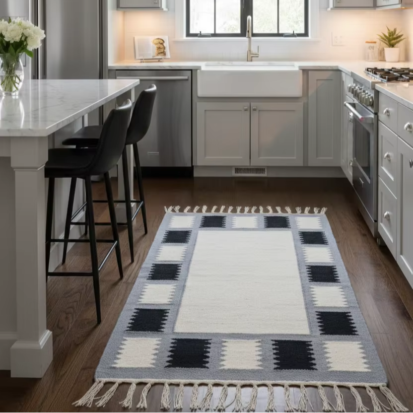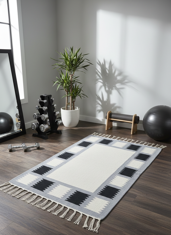 พรมปูพื้น/พรมเช็ดเท้า รูปทรงสี่เหลี่ยมผืนผ้า ลายดอกไม้ทันสมัย ทอมือจากผ้าฝ้าย น้ำหนัก 950 กรัม ซักได้ ผ้าพลัฌสองด้าน สามสี
