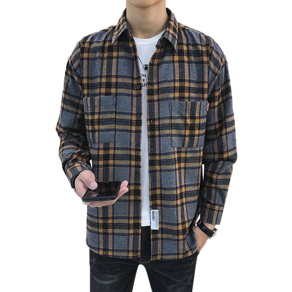 เสื้อเชิ้ตผ้าสักหลาดแขนยาวลายสก๊อตสำหรับผู้ชายเสื้อถักผ้าฝ้ายหนาหลายสีปรับแต่งโลโก้ได้