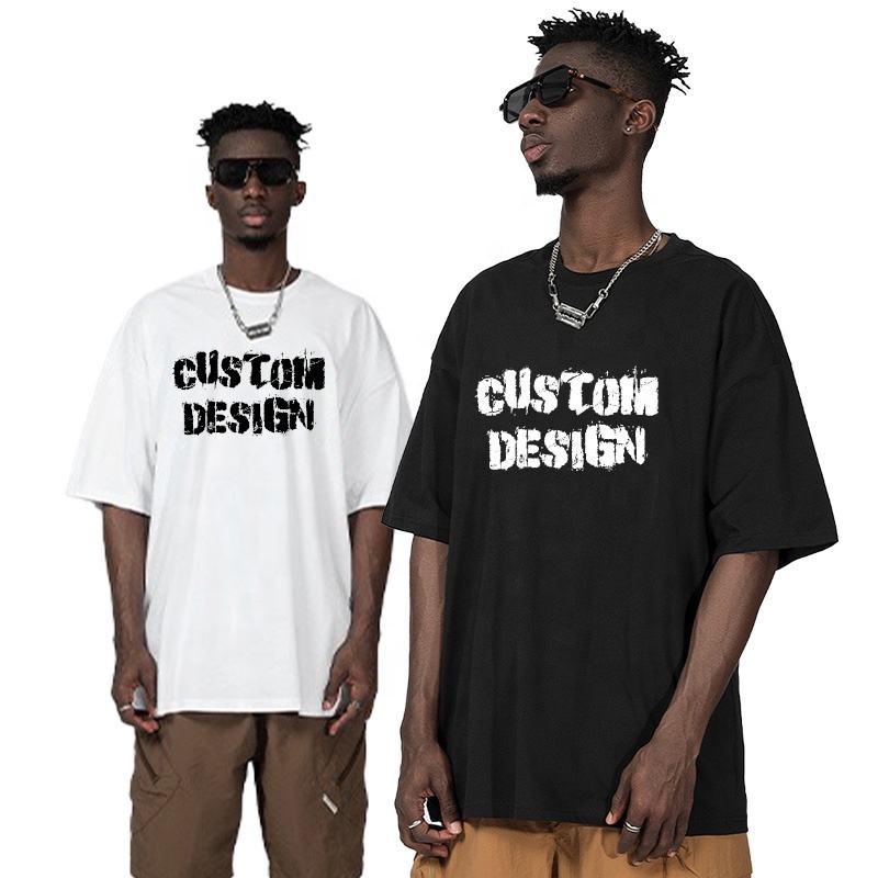 เสื้อยืดวินเทจผ้าคอตตอนสำหรับผู้ชายพิมพ์ลายโลโก้ด้วย280สีดำล้วน300แกรมเฮฟวี่เวท