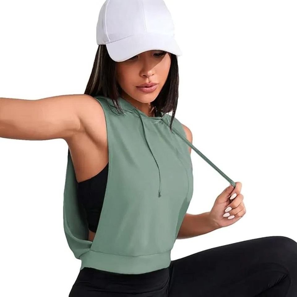 เสื้อแขนกุดมีฮู้ดเสื้อครอปสำหรับผู้หญิงเสื้อครอปมีฮู้ดกีฬาผ้าโพลีเอสเตอร์