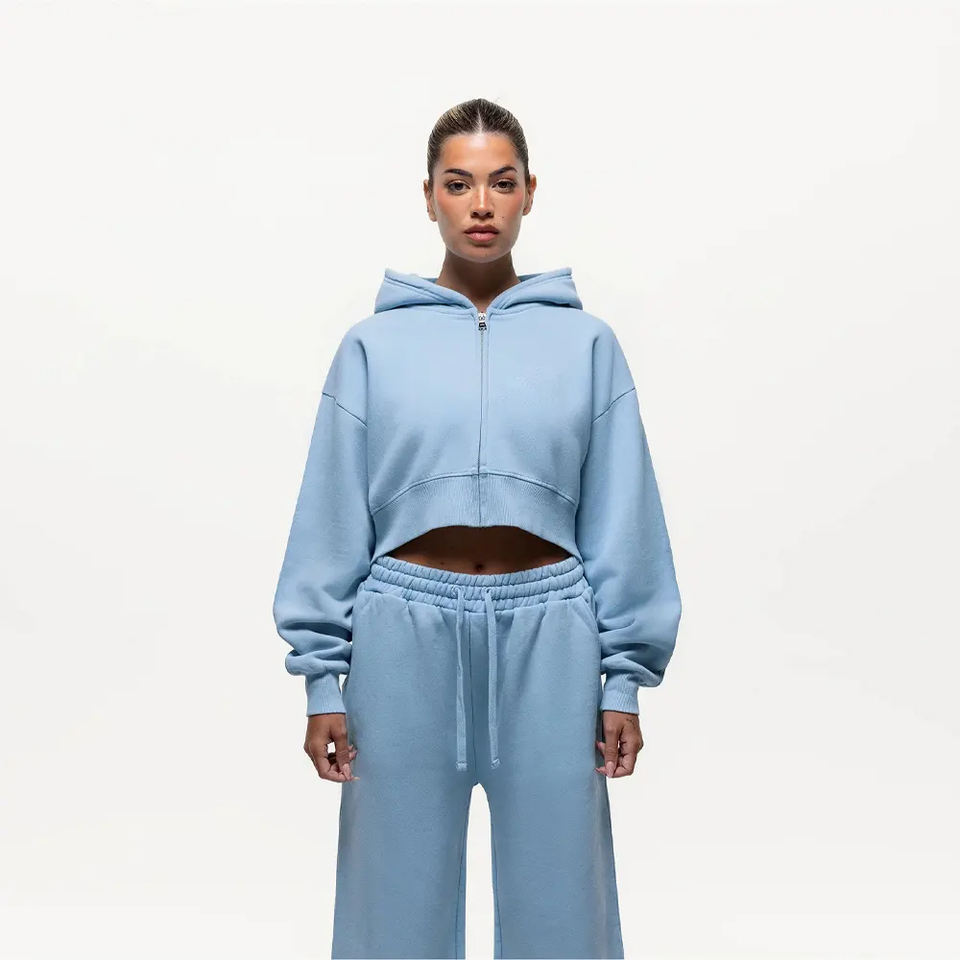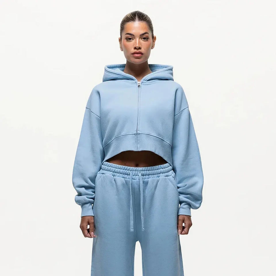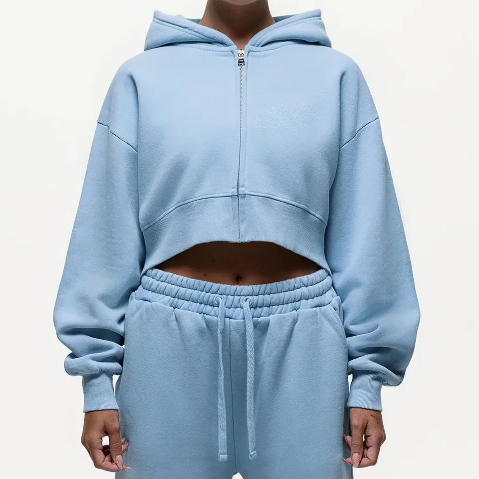 Wholesale Cotton Pullover Breathable Women Crop Hoodies Custom Logo Cheap Solid Color Plain Women Cropped Hoodies
