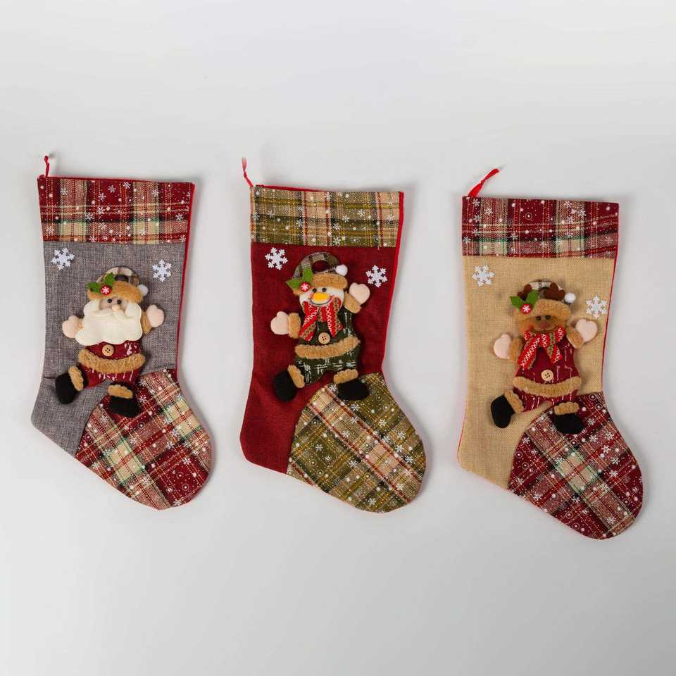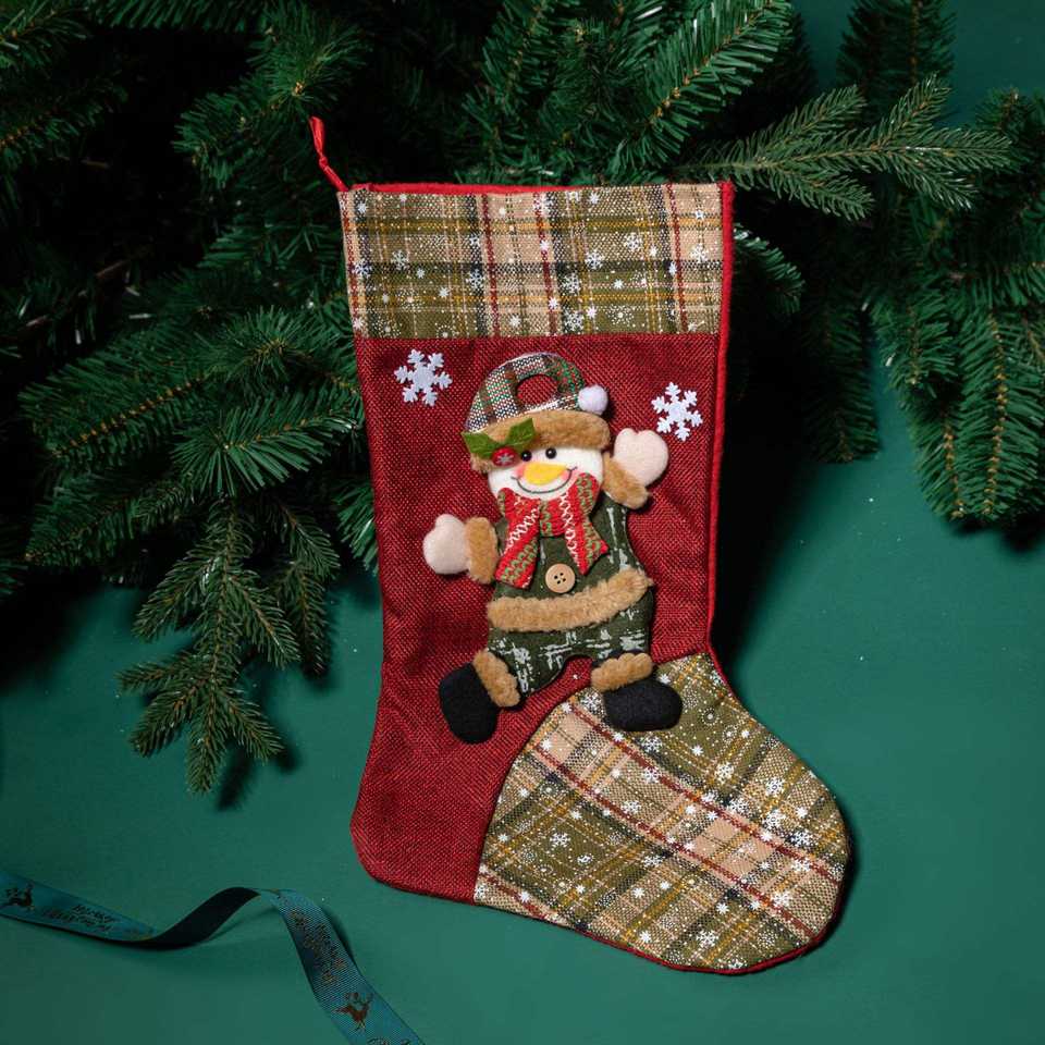 ถุงของขวัญลายสก็อตผ้าฝ้ายและผ้าลินิน YIJIA C004 ขนาดกลาง ลายตุ๊กตาหิมะ ซานตาคลอส ถุงคริสต์มาสแบบถุง OPP ขายส่ง