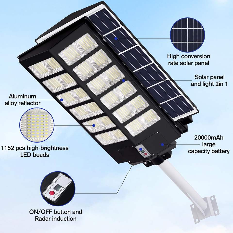 ไฟถนนโซลาร์เซลล์แบบรวมแสง LED กันน้ำ IP65 สำหรับถนนชนบท ขายส่ง กำลังไฟ 500w-2000w แบบออลอินวัน สำหรับไฟส่องสว่างภายนอกอาคาร