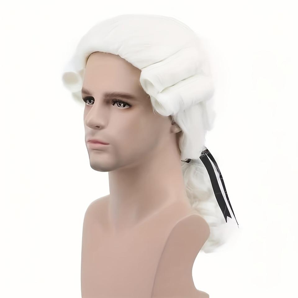 วิกผมคอสเพลย์ทรงผมหางม้าหยิกสีขาวสไตล์ย้อนยุคแบบนักกฎหมาย/ผู้พิพากษาสำหรับเด็กและผู้ใหญ่ (ขายส่ง)
