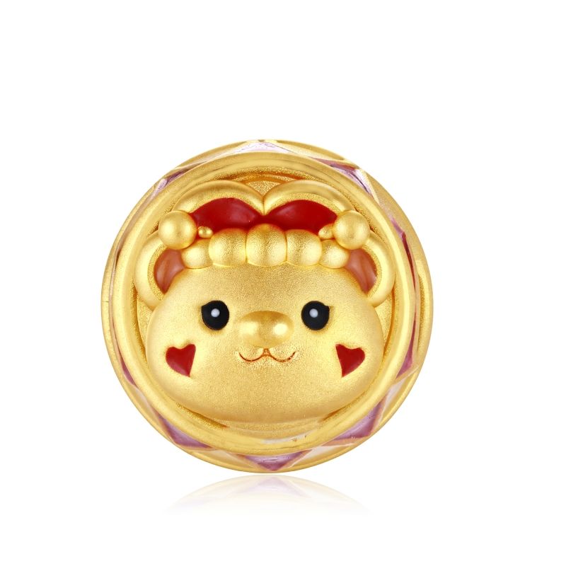 ขายส่งชิ้นส่วนเครื่องประดับรูปหมีตัวตลกประดับลูกปัดทองคำแท้ 24K น้ำหนัก 0.9 กรัม รูขนาด 2.6 มม. ผิวขัดทรายเคลือบเงา