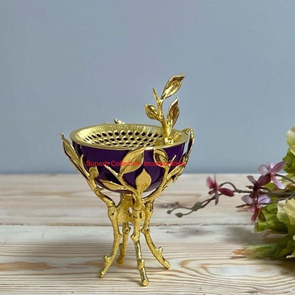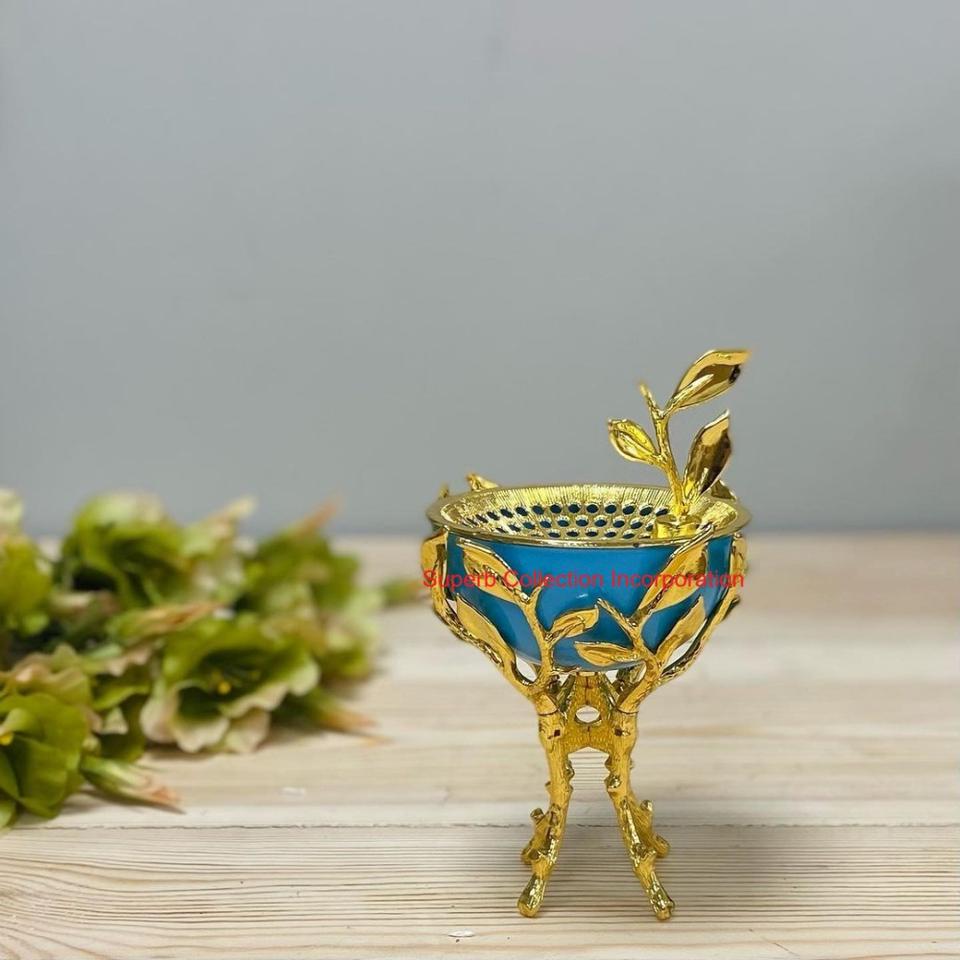 กระถางธูปทองเหลืองหรูหราพร้อมชามเซรามิกสีเขียวสำหรับตกแต่งบ้านและโรงแรมขายส่ง
