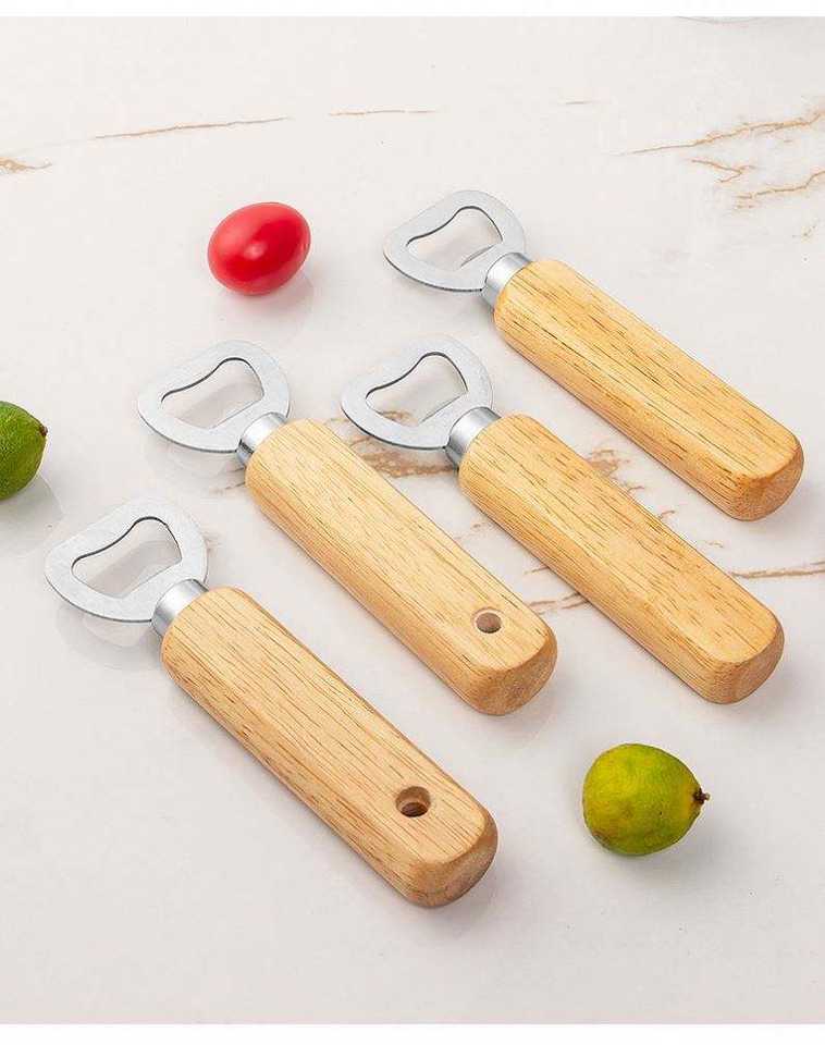 ที่เปิดขวดเบียร์ทำจากไม้และสเตนเลสสตีลที่เปิดขวดเบียร์ทำจากไม้อย่างสร้างสรรค์พร้อมโลโก้สำหรับใช้ในครัวเรือน