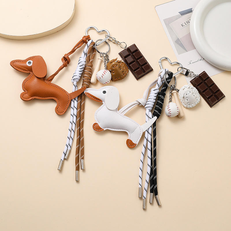 พวงกุญแจเชือกถักหนังถักที่สร้างสรรค์เป็นมิตรต่อสิ่งแวดล้อมกระเป๋าไส้กรอกสุนัขใหม่เครื่องประดับกระเป๋านักเรียน
