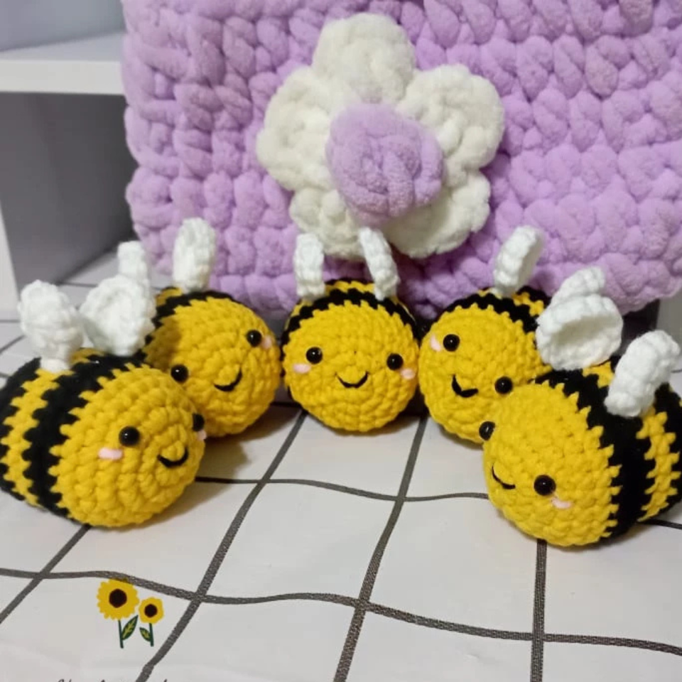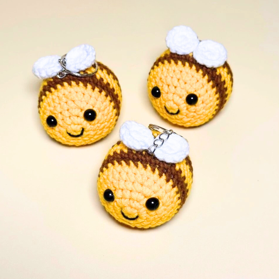 พวงกุญแจรูปสัตว์สีเหลือง3D พวงกุญแจรูปสัตว์โครเชต์ผึ้งงานแฮนด์เมดผลิตในเวียดนาม