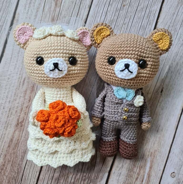 ชุดสูทและหมีคู่โครเชต์น่ารักสำหรับเจ้าสาวและเจ้าบ่าวของขวัญวันวาเลนไทน์