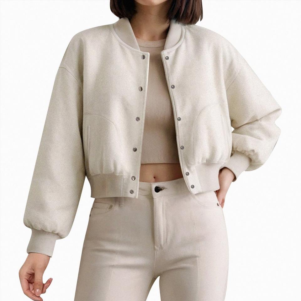 แจ็กเก็ตบอมเบอร์สำหรับผู้หญิงเสื้อครอปแจ็คเก็ตสั้นอินเทรนด์สำหรับผู้หญิง (โลโก้และสีที่กำหนดเอง)