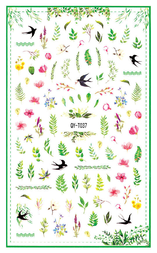 Wholesale Cross-Border Flower Waterproof Adhesive 3D Stickers Spring Peach Rose Cherry Blossom Nail Decals
