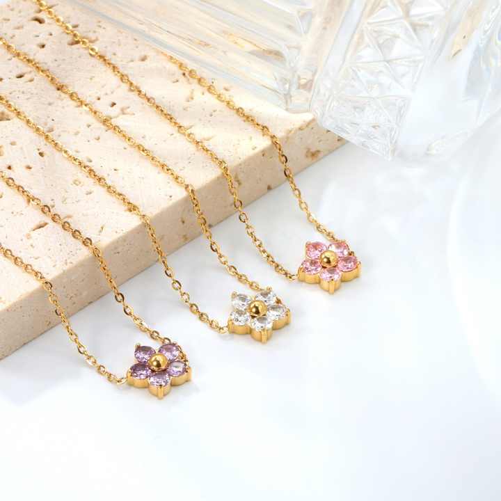 Wholesale Crystal Fashion Jewelry Necklaces Korea Style Stainless Steel 18K Gold Plated Zircon Tiny Flower Necklace for Women