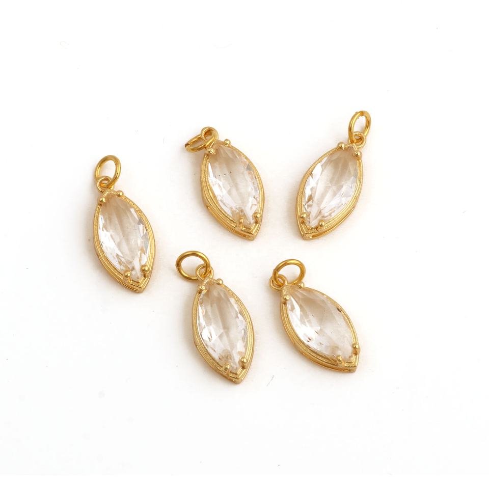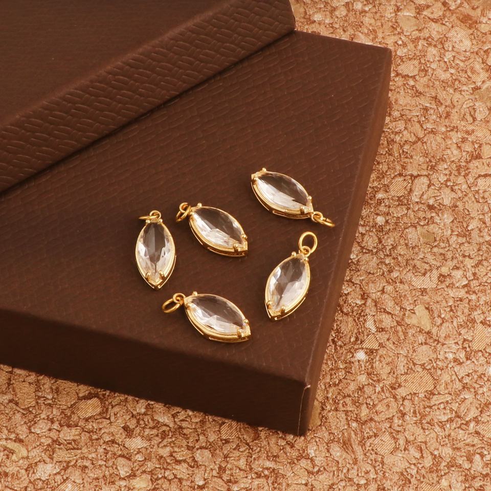ขั้วต่อจี้คริสตัลควอทซ์มาร์คีส์แบบมินิมอลลิสต์ชุบทองวัสดุทองเหลืองสลักการตั้งค่ากรงเล็บสำหรับเครื่องประดับ