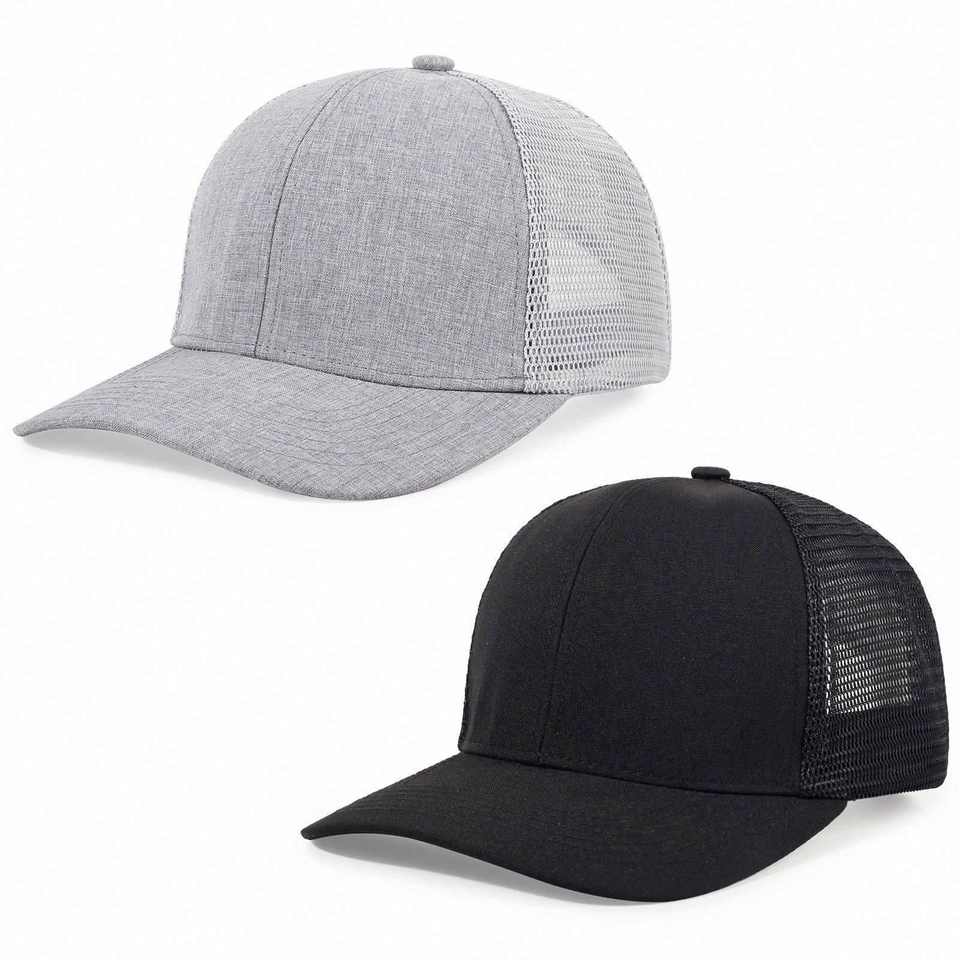 หมวกแก๊ปทรงโค้งแบบขายส่ง 6 แผง หมวกตาข่ายเปล่า หมวกทรัคเกอร์แบบกำหนดเอง