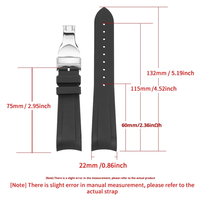 สายนาฬิกายางโค้งปลายแหลมสำหรับนาฬิกา Rolex TUDOR สายรัดข้อมือยางซิลิโคนขนาด 22 มม. ขายส่ง