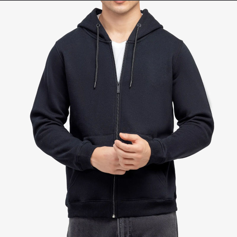 บริการขายส่งแบบ OEM เสื้อฮู้ดผู้ชายผ้าฟลีซสีพื้นแบบสวมหัวมีซิปยาว แขนยาว ผ้าฝ้าย 100% สำหรับฤดูหนาว รับผลิตตามแบบ