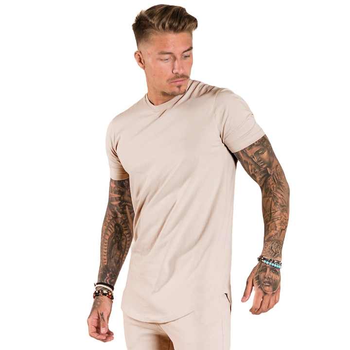 เสื้อยืดคอกลมแขนสั้นผ้าฝ้ายชาย ทรงชายเสื้อโค้ง สั่งพิมพ์ลายได้