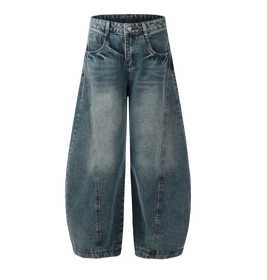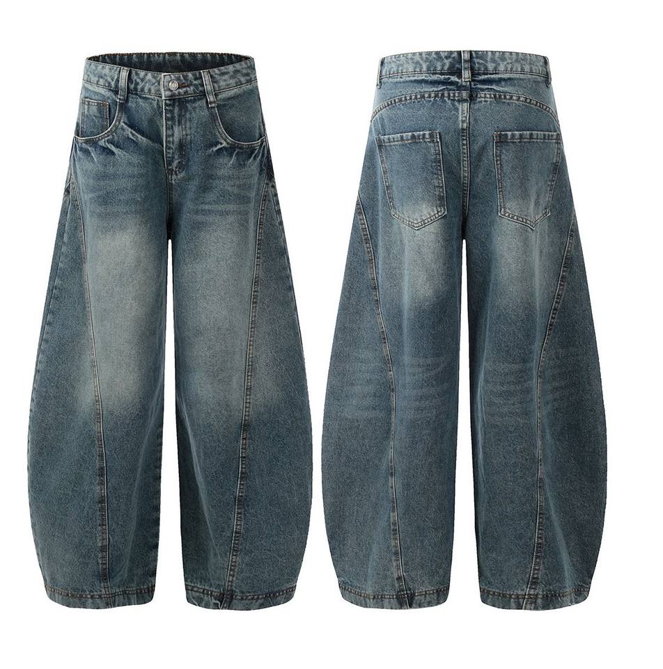 กางเกงขายาวผ้าฝ้ายอ็อกซ์ฟอร์ดเดนิมสั่งทำขายส่ง 100% ระบายอากาศได้ดี ล้างสีแบบแอซิด แต่งขนกำมะหยี่ สไตล์ไฮสตรีท เอวยางยืด