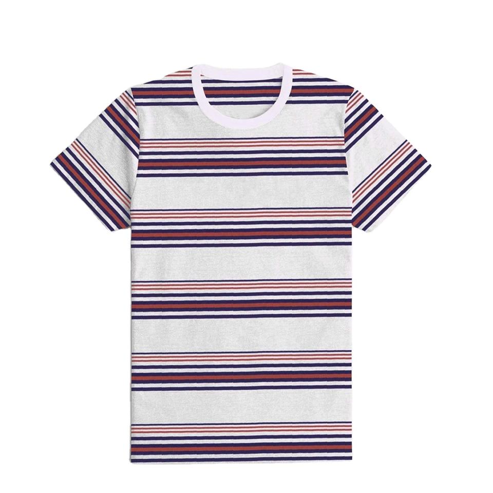 เสื้อยืดพิมพ์ลายแขนสั้นผ้าฝ้ายแท้ 100% ระบายอากาศ แห้งเร็ว ลายทาง รับผลิตตามสั่งขายส่ง