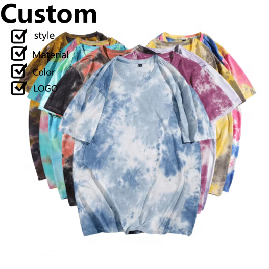 เสื้อยืดโอเวอร์ไซส์ผ้าฝ้ายแท้ 100% แบบย้อมสีไท-ได สำหรับผู้ชาย สไตล์ลำลอง ล้างสีแบบแอซิด พร้อมโลโก้ ผลิตตามสั่งขายส่ง ผ้าถัก สีพื้น