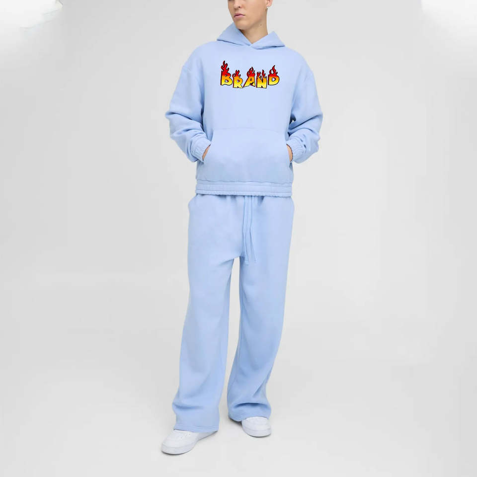 ชุดวอร์มผ้าฝ้ายโอเวอร์ไซส์สำหรับผู้ชายชุดวอร์ม2ชิ้นทรงแบ็กกี้และมีฮู้ดสำหรับ100% ออกแบบได้ตามต้องการ