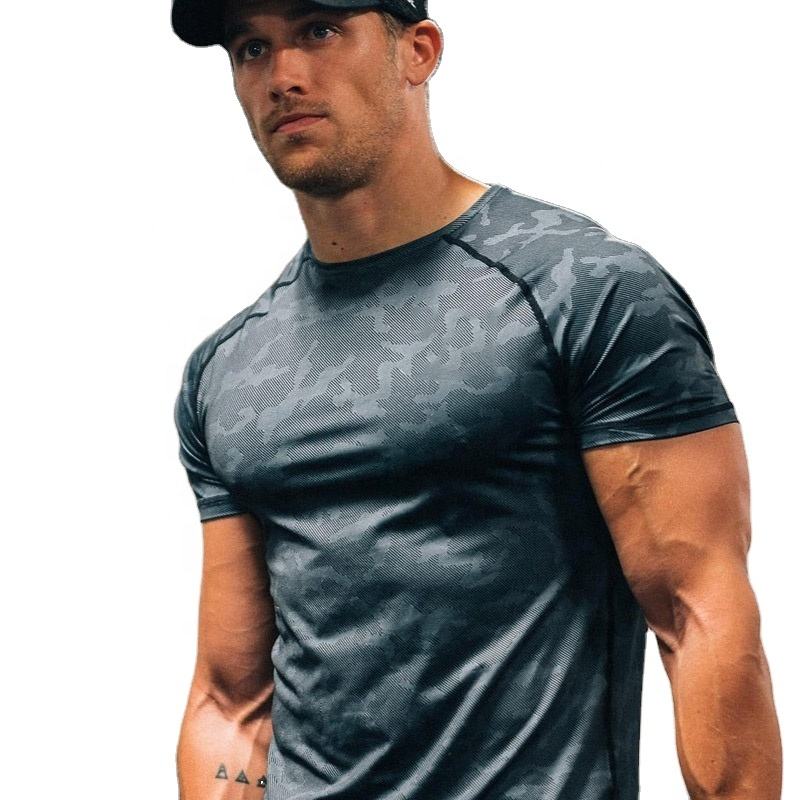 เสื้อยืดยิมของผู้ชายผ้าโพลีเอสเตอร์ลายพรางขนาดใหญ่ลายพรางเสื้อยืดสำหรับฟิตเนสใช้ได้ทั้งชายและหญิงแบบ100% ออกแบบได้ตามต้องการ