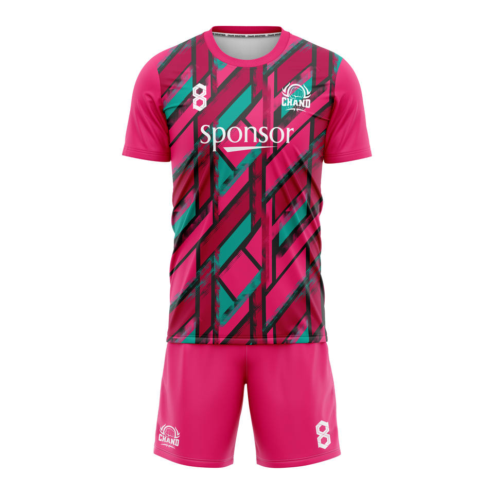 ชุดฟุตบอลคอกลมของผู้ชายผ้าโพลีเอสเตอร์แบบ100% เสื้อเจอร์ซี่ลายเรขาคณิตระบายอากาศใส่สบายออกแบบได้ตามต้องการ