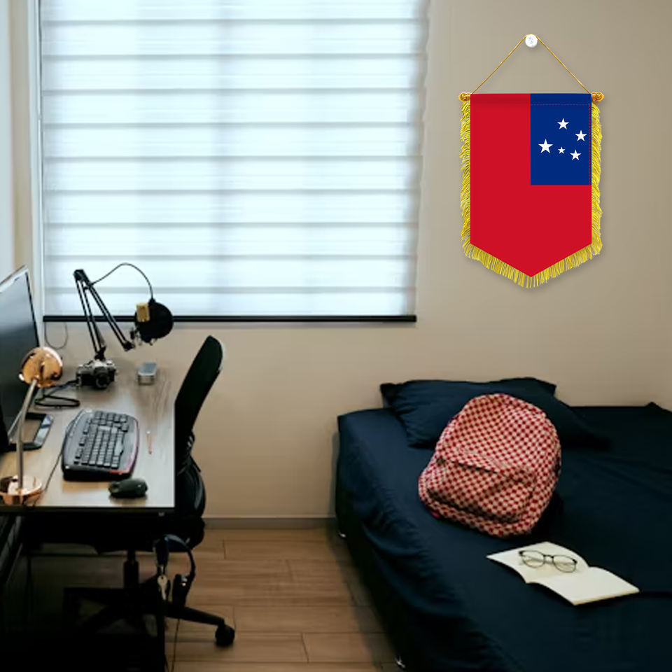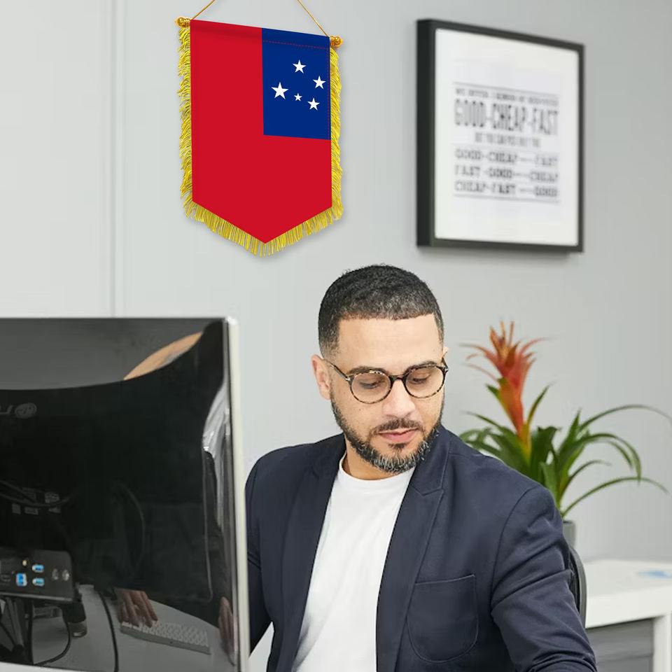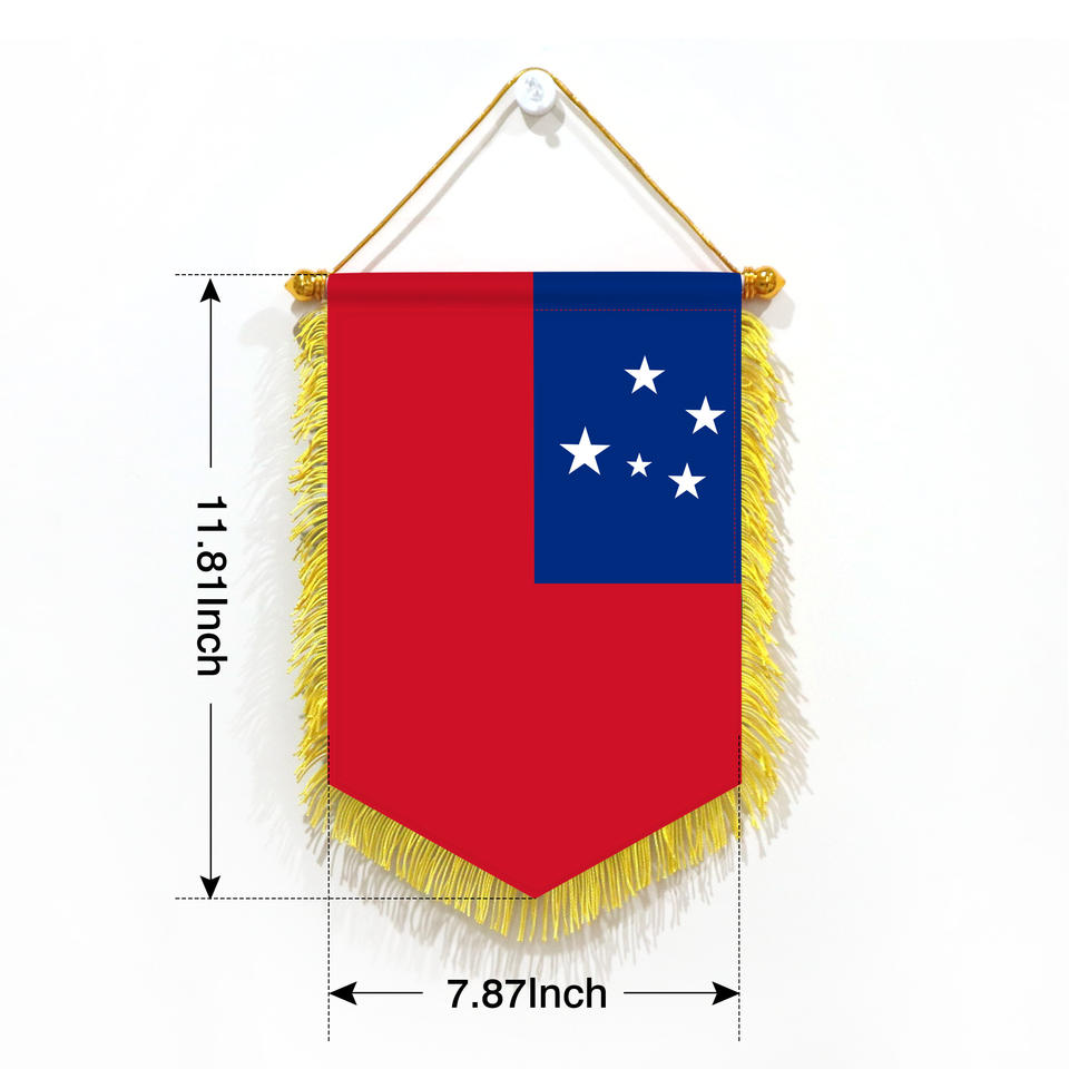 ธงซาโมอาแบบมีชายครุย ขนาด 11.81x7.87 นิ้ว ผลิตตามสั่งขายส่ง ธงตกแต่งสำนักงาน สีสันสดใสและติดทนนาน