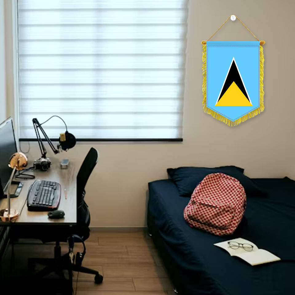 ธงสตรีลูเซียแบบมีชายครุย ขนาด 11.81x7.87 นิ้ว ผลิตตามสั่งขายส่ง ธงตกแต่งสำนักงาน สีสันสดใส ทนทาน