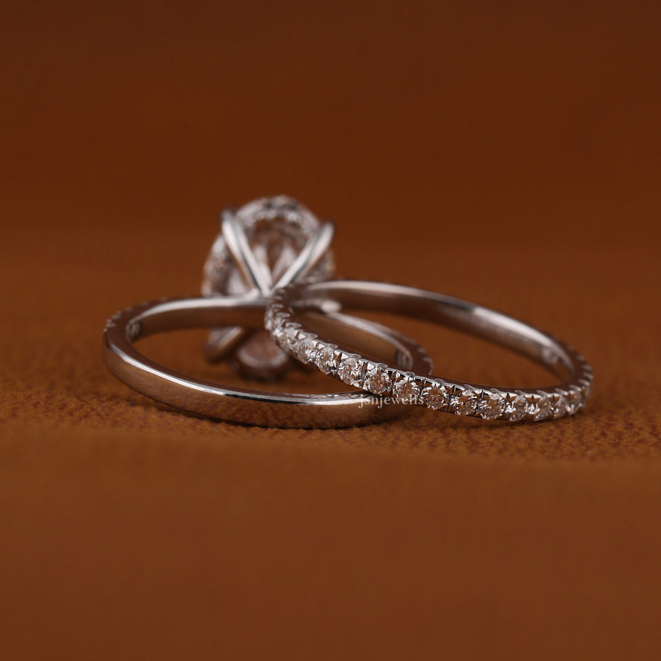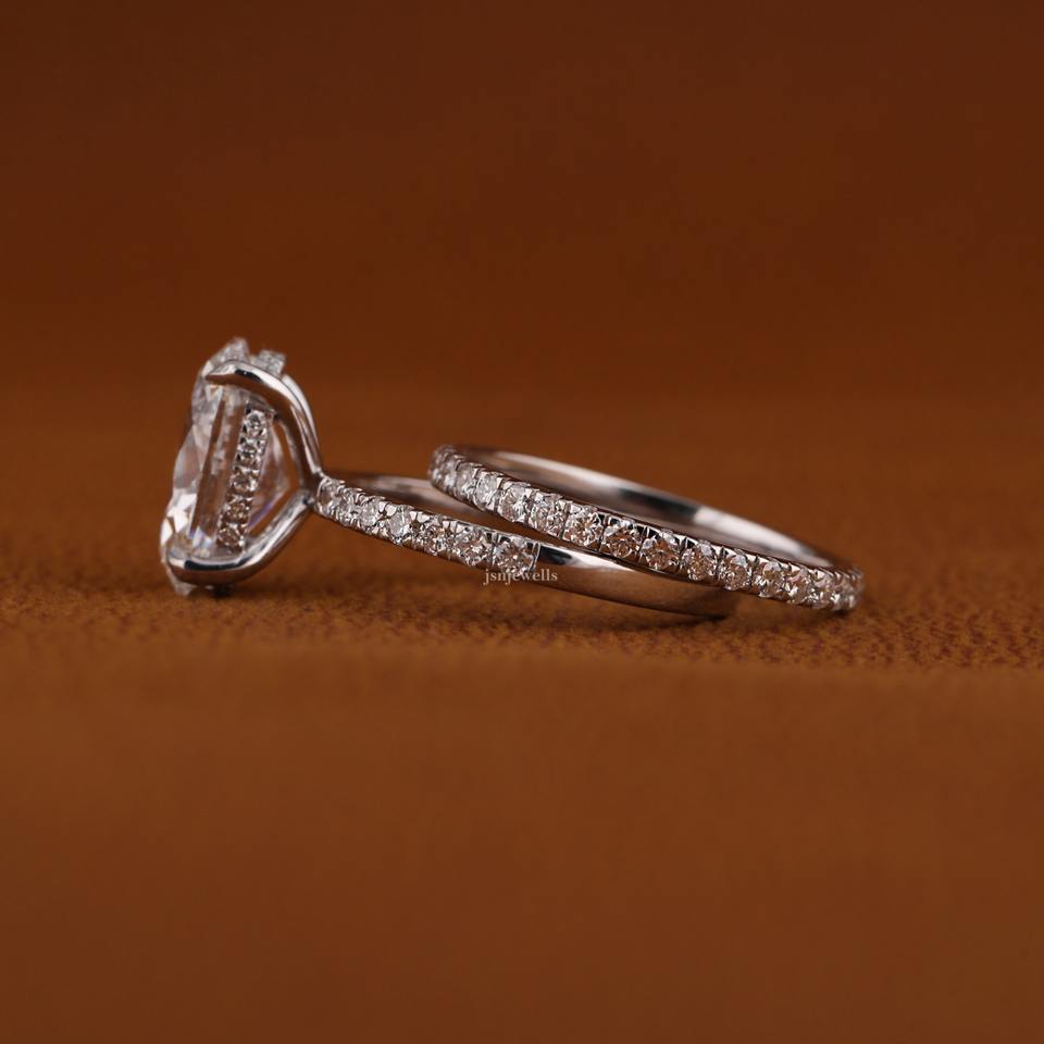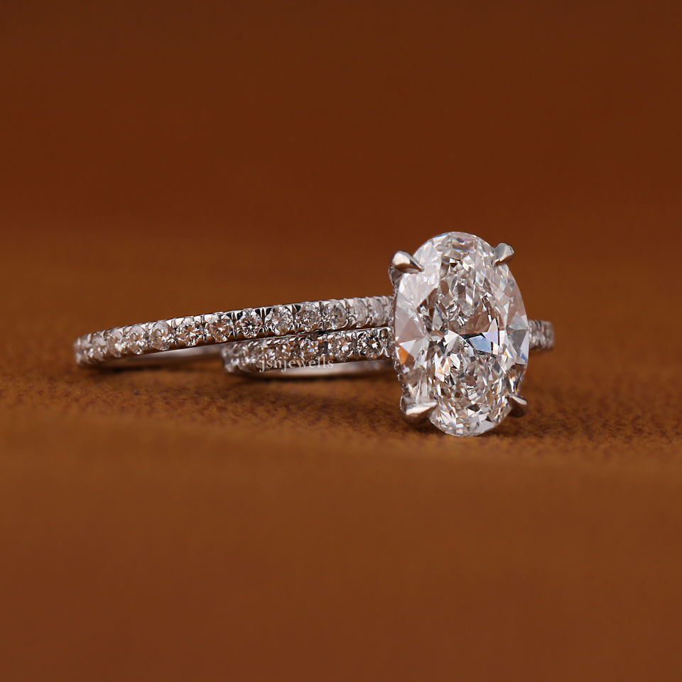 แหวนหมั้นเพชรรูปไข่ 3 กะรัต ทอง 14K ผลิตตามสั่ง ขายส่ง พร้อมใบรับรอง IGI ประดับเพชรแบบ Pave Band เครื่องประดับเจ้าสาว