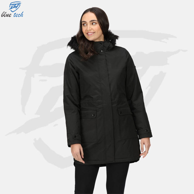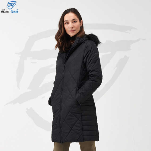เสื้อแจ็คเก็ตพัฟเฟอร์ขนสัตว์ยาวสำหรับผู้หญิงปี 2024 แบบขายส่งสั่งทำพิเศษ บุด้วยขนเป็ด ตกแต่งด้วยขนสัตว์และกระดุม สำหรับฤดูหนาว ทำจากผ้าฝ้าย