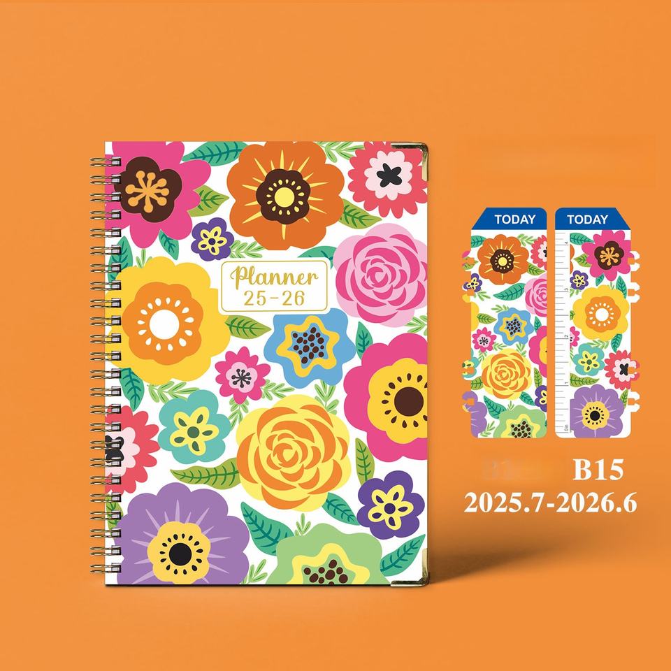 สมุดจดบันทึกตารางเวลาภาษาอังกฤษม้วน A5 2025-7/2026-6ปีแบบกำหนดเองรายเดือนรายปี