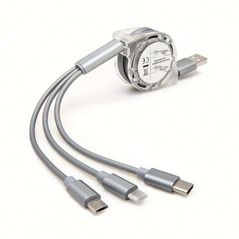 สายเคเบิลซิงค์ข้อมูล Micro USB iPhone แบบ3-in-1พร้อมแกนทองแดงแท้ใช้ส่งเสริมการขายและโลโก้ที่กำหนดเอง