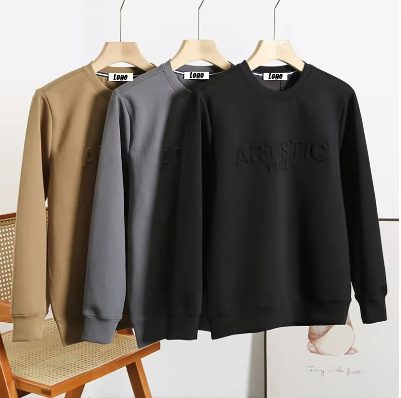 เสื้อสเวตเตอร์คอกลมของผู้ชายเสื้อสเวตเชิ้ตลายนูน3D ตามสั่ง