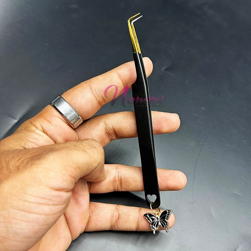 แหนบขนตาสแตนเลส45องศาพร้อมปลายไฟเบอร์และเครื่องรางสำหรับการต่อขนตา