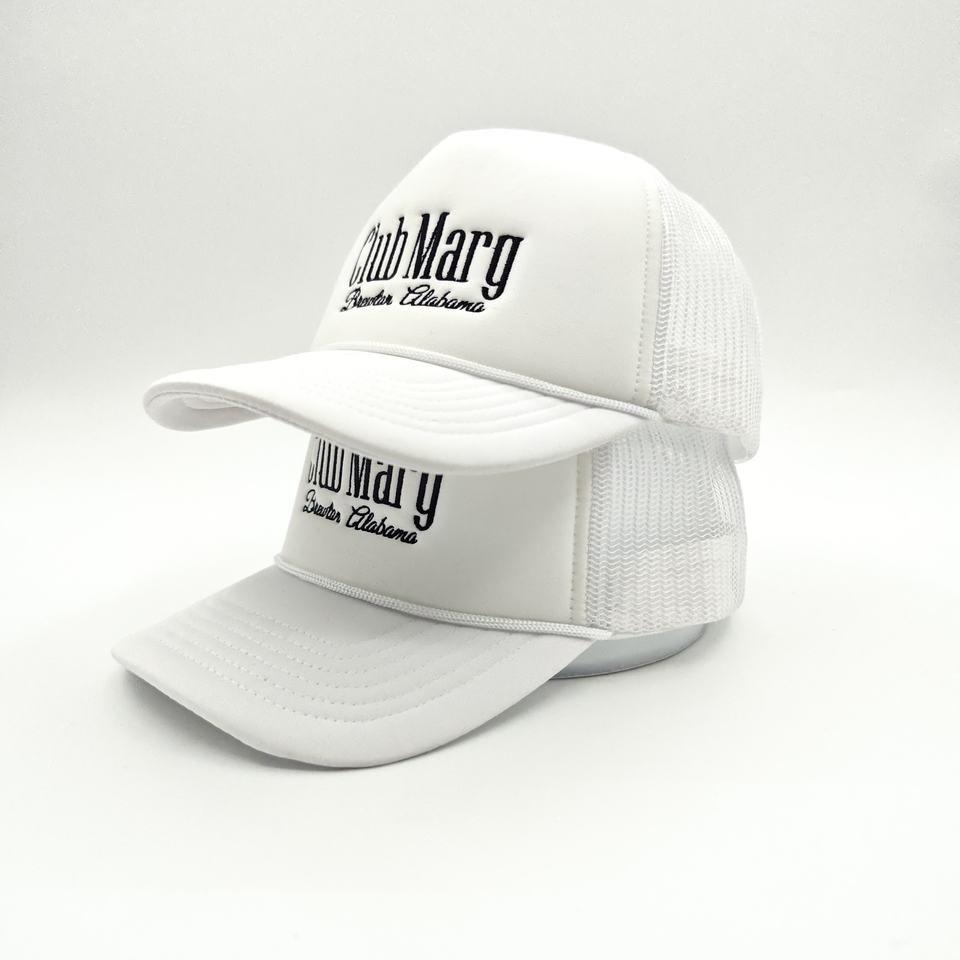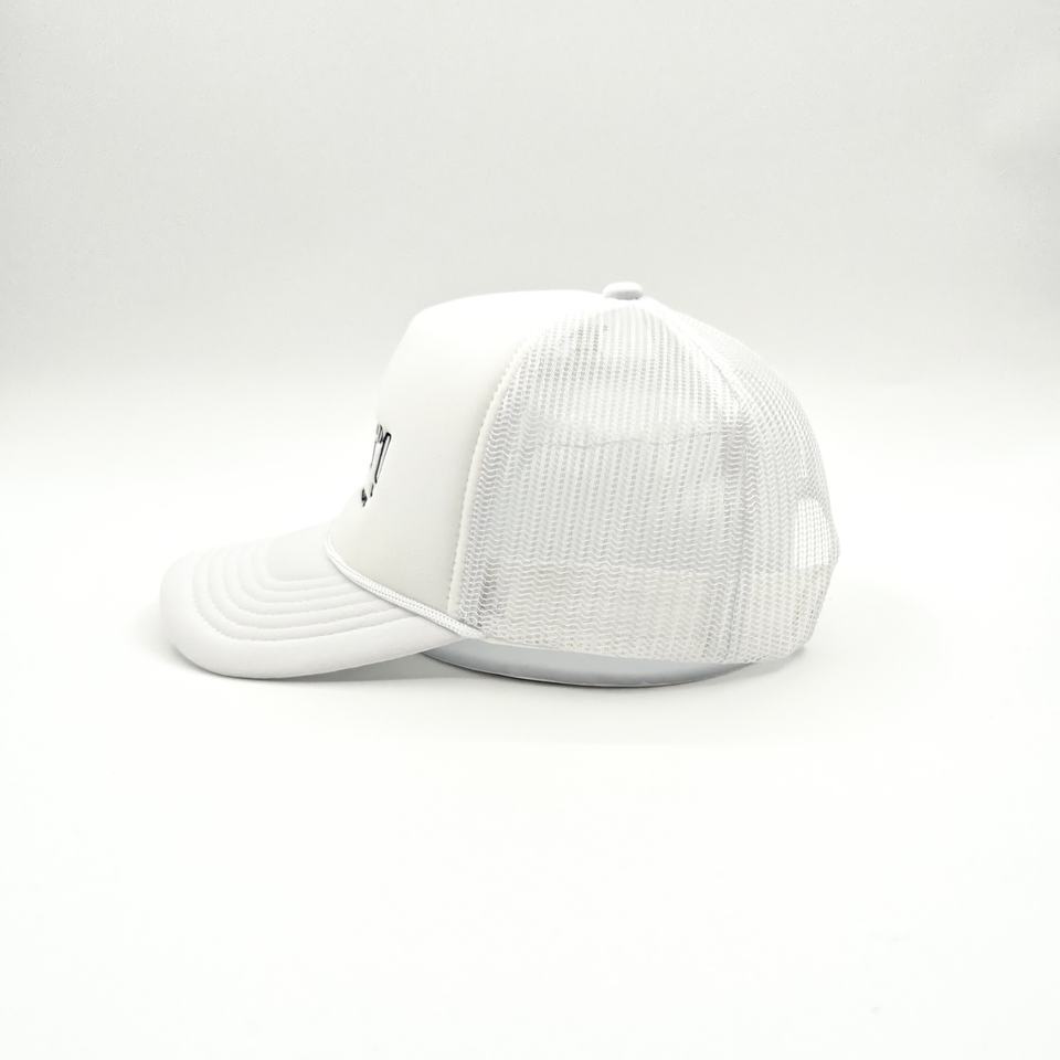 หมวกแก๊ปตาข่ายสีขาวปักลาย 5 ชิ้นแบบโค้งมน พร้อมโลโก้ รับผลิตตามสั่งขายส่ง