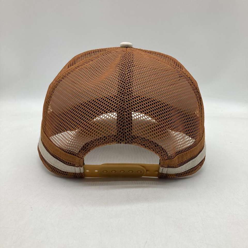 หมวกแก๊ปทรงทรัคเกอร์แบบมีโครง 5 ชิ้นส่วน ลายทาง ปักลายธงชาติออสเตรเลีย 2 แถบด้านข้าง รับผลิตตามสั่งขายส่ง