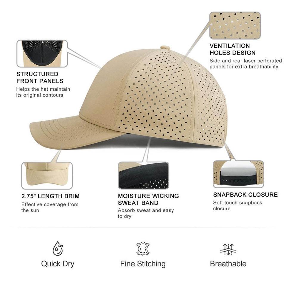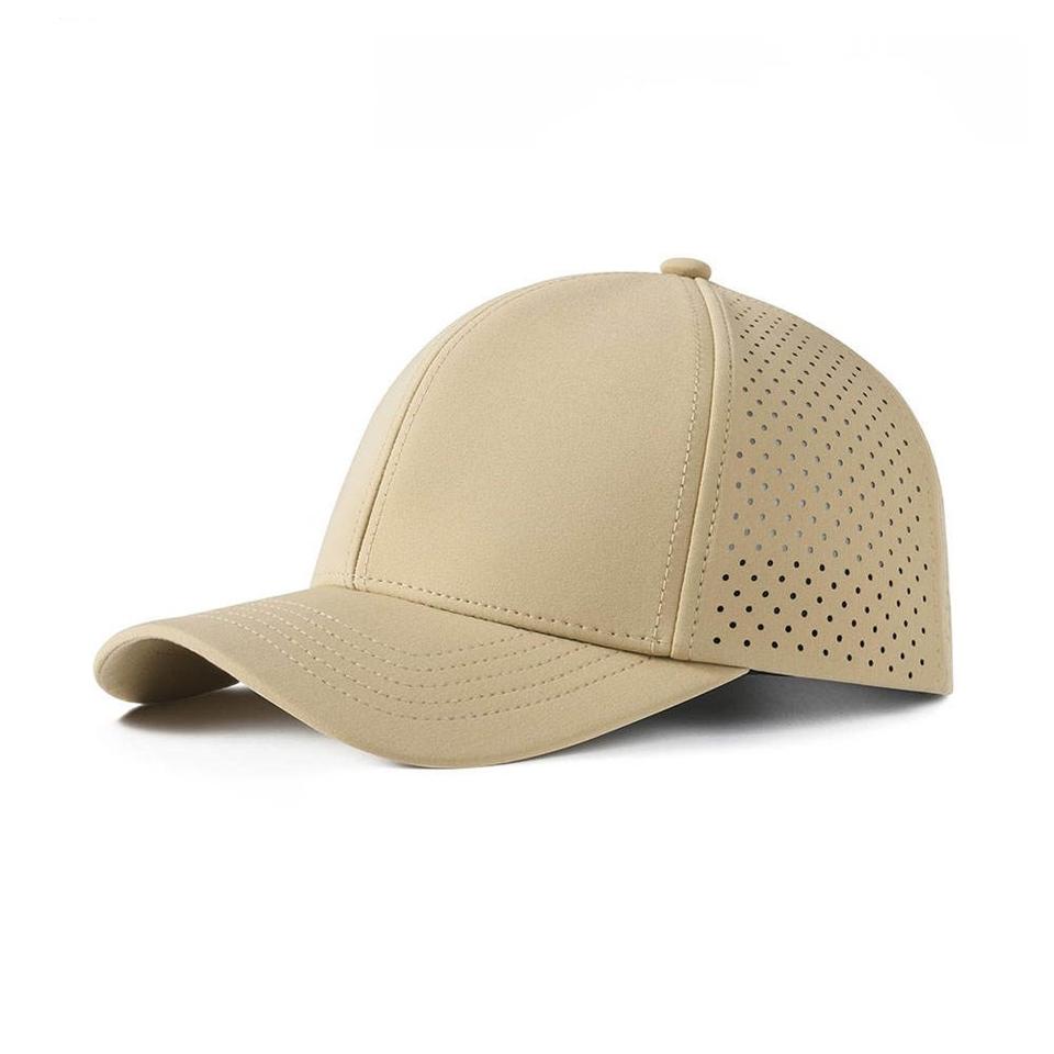 หมวกเบสบอลแห้งเร็ว5แผงหมวกกีฬาผ้าใบสีดำเจาะรูเจาะรูแฟชั่นเลเซอร์