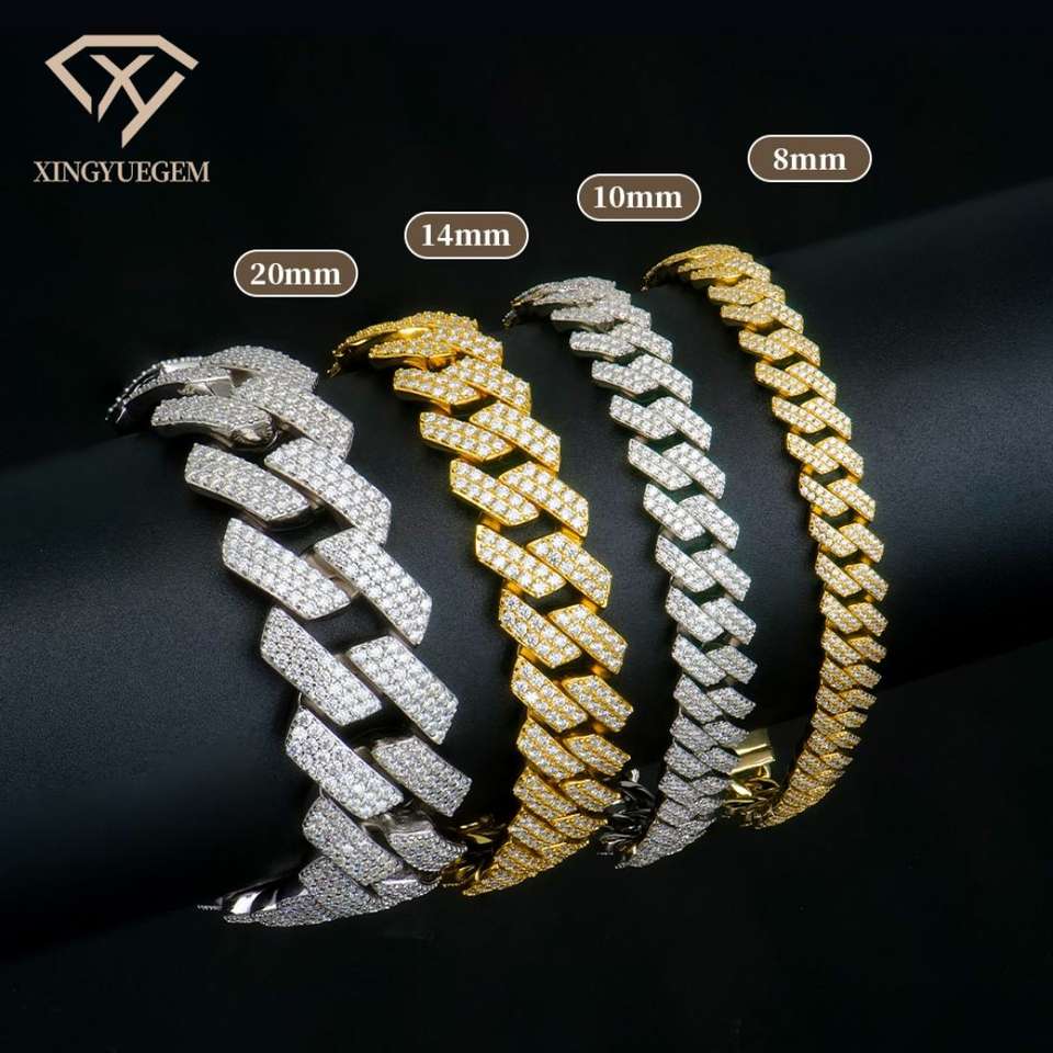 ขายส่งกำไลข้อมือคิวบาแบบฮิปฮอปเงินแท้ 925 ประดับเพชรโมอิสซาไนต์ ขนาด 8 10 12 14 18 20 มม. รับสั่งทำตามแบบ