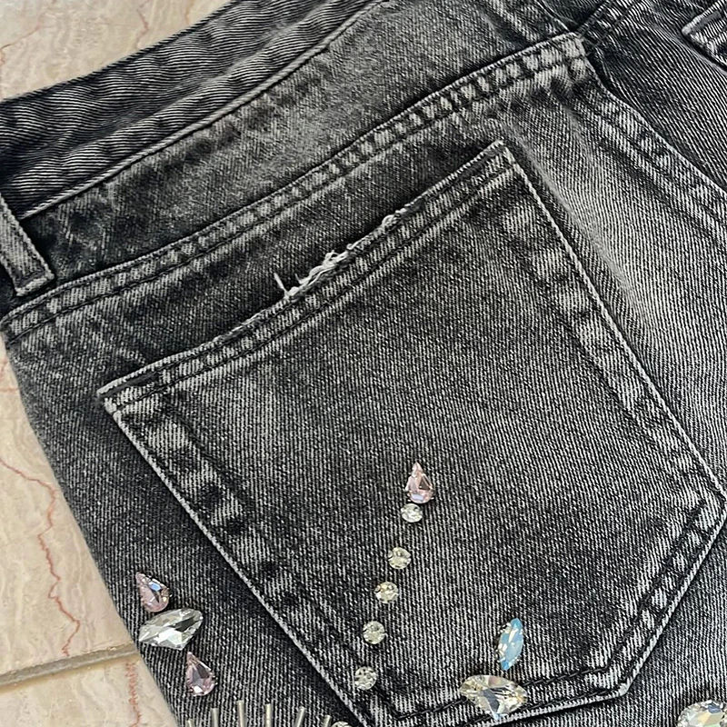 กางเกงยีนส์ขาสั้นวินเทจผ้ายีนส์ทรงหลวมสำหรับฉันกางเกงขาสั้นผ้ายีนส์ซักได้ตามต้องการ