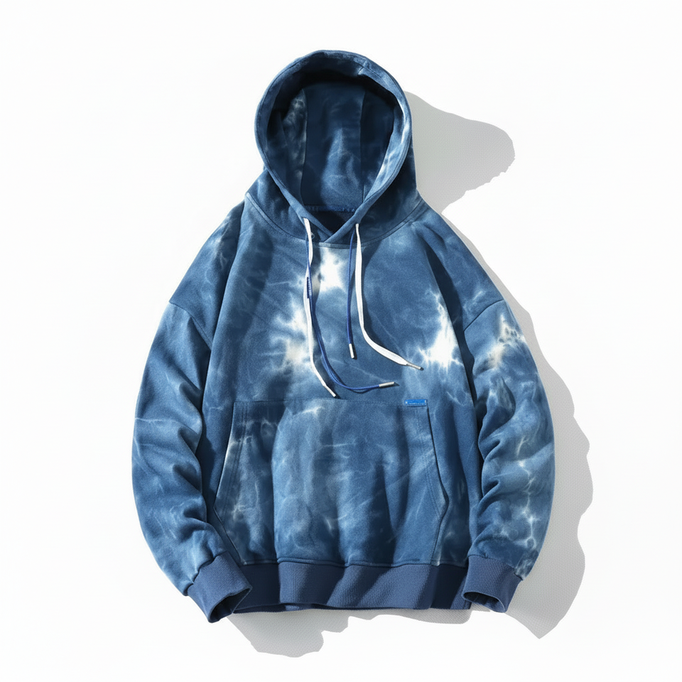 เสื้อฮู้ดดี้ผู้ชายแฟชั่นลำลอง สีไล่ระดับแบบย้อมกรด ผ้าฝ้าย 100% แขนยาว