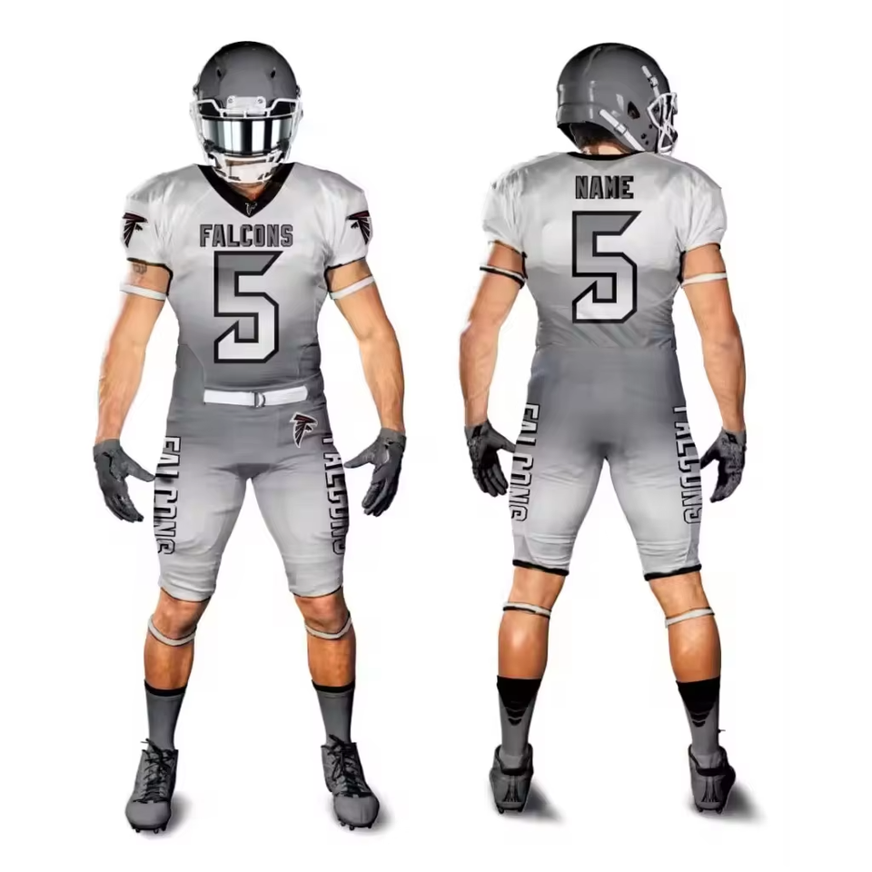 ชุดยูนิฟอร์มอเมริกันฟุตบอลสำหรับผู้ใหญ่แบบขายส่งสั่งทำได้ ไซส์ใหญ่ ผ้าโพลีเอสเตอร์/คอตตอนต้านเชื้อแบคทีเรีย แห้งเร็ว ระบายอากาศได้ดี