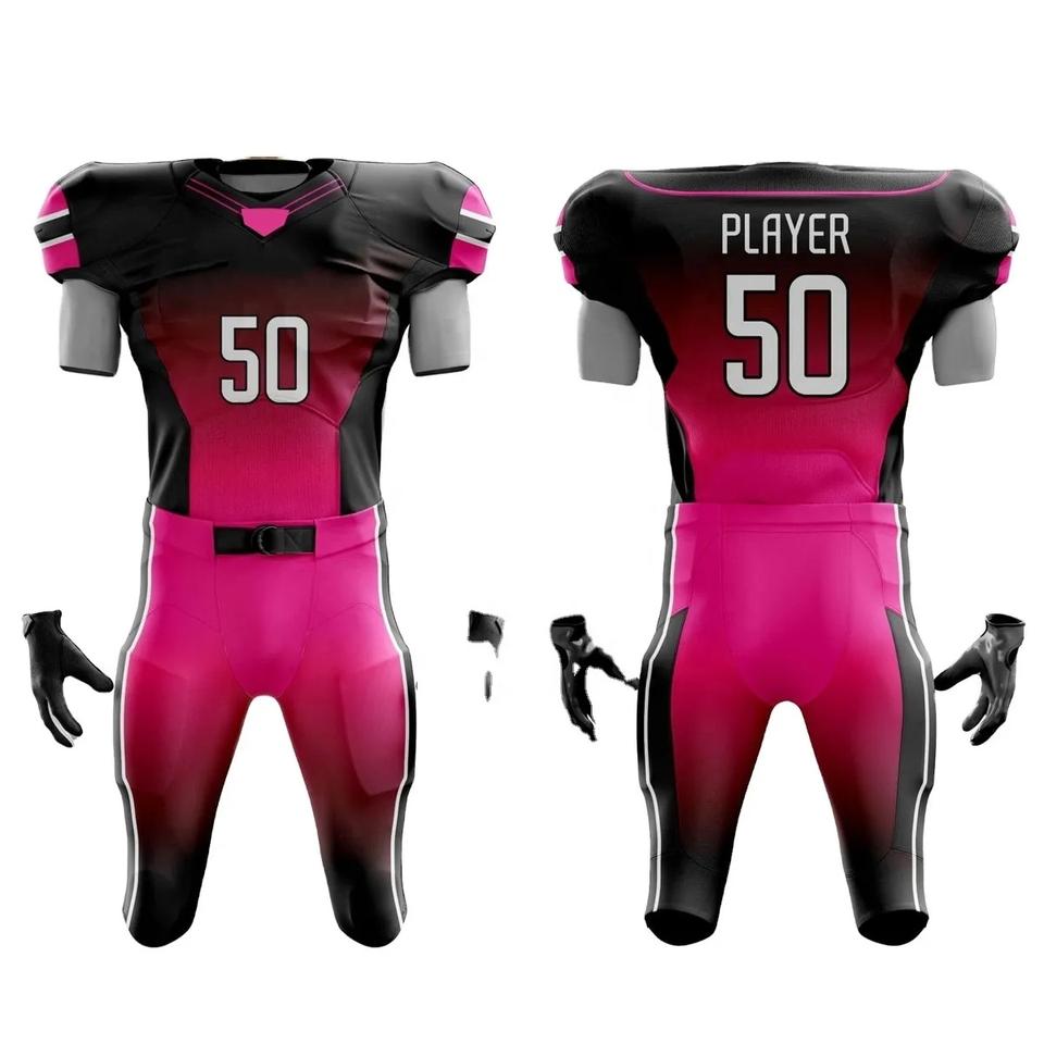 เสื้อฟุตบอลอเมริกันแบบสั่งทำกางเกงขาสั้นเสื้อรักบี้ระบายอากาศพร้อมปักชื่อทีมจำนวนตัวเลือกขนาดพิเศษ