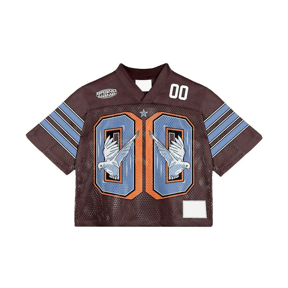 เสื้อฟุตบอลย้อนยุคอเมริกันฟุตบอลพิมพ์ลายสตรีทแวร์ระบายอากาศตาข่ายพิมพ์ลาย