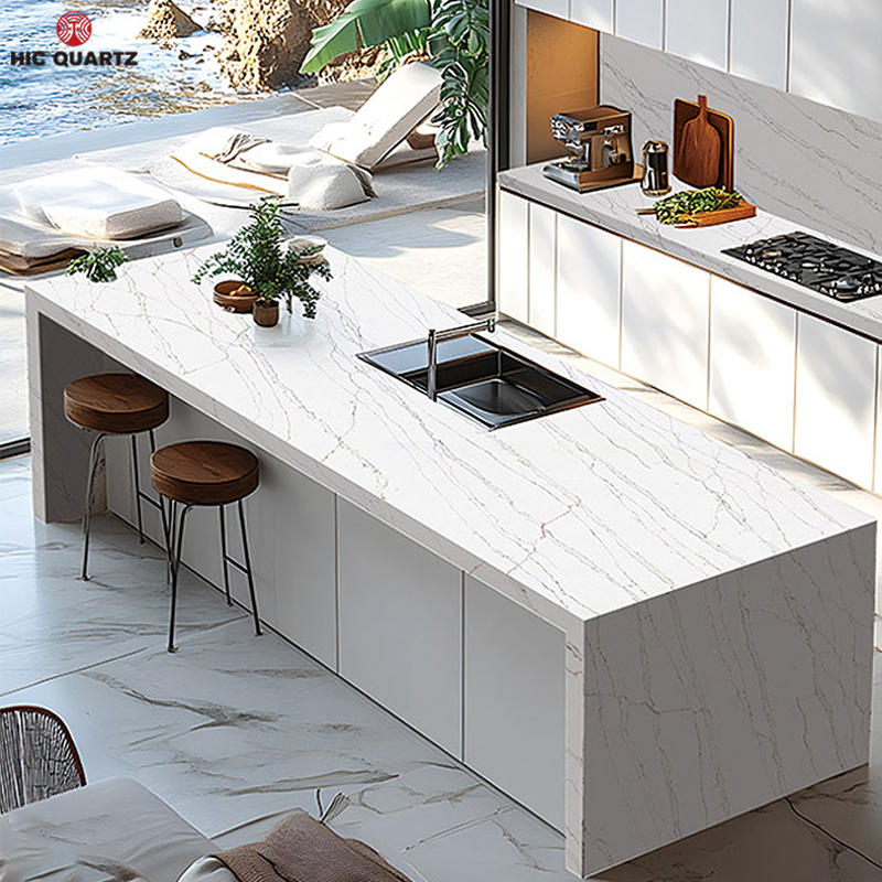 ชื่อผลิตภัณฑ์:เทียม calacatta แผ่นหินควอตซ์สีขาว