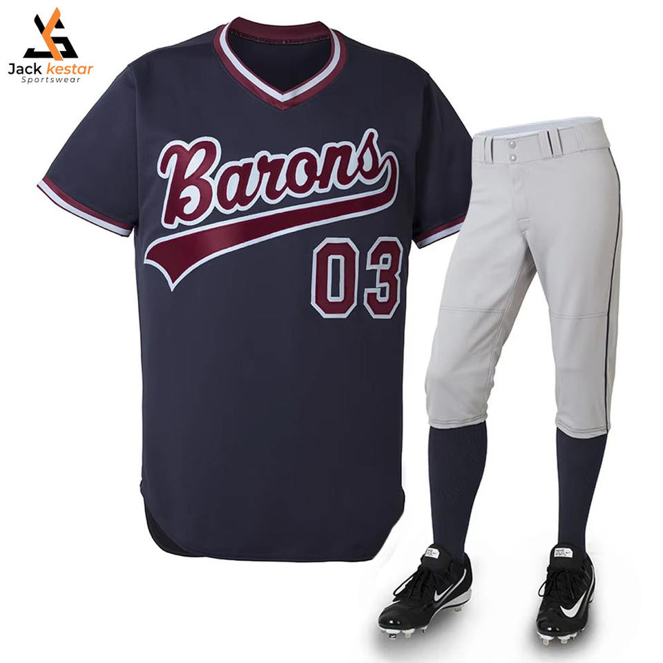 เสื้อเบสบอลและซอฟต์บอลสั่งทำขายส่ง ปักโลโก้ สีตามสั่ง เสื้อซอฟต์บอลแบบซับลิเมชั่นสไตล์อเมริกัน แห้งเร็ว