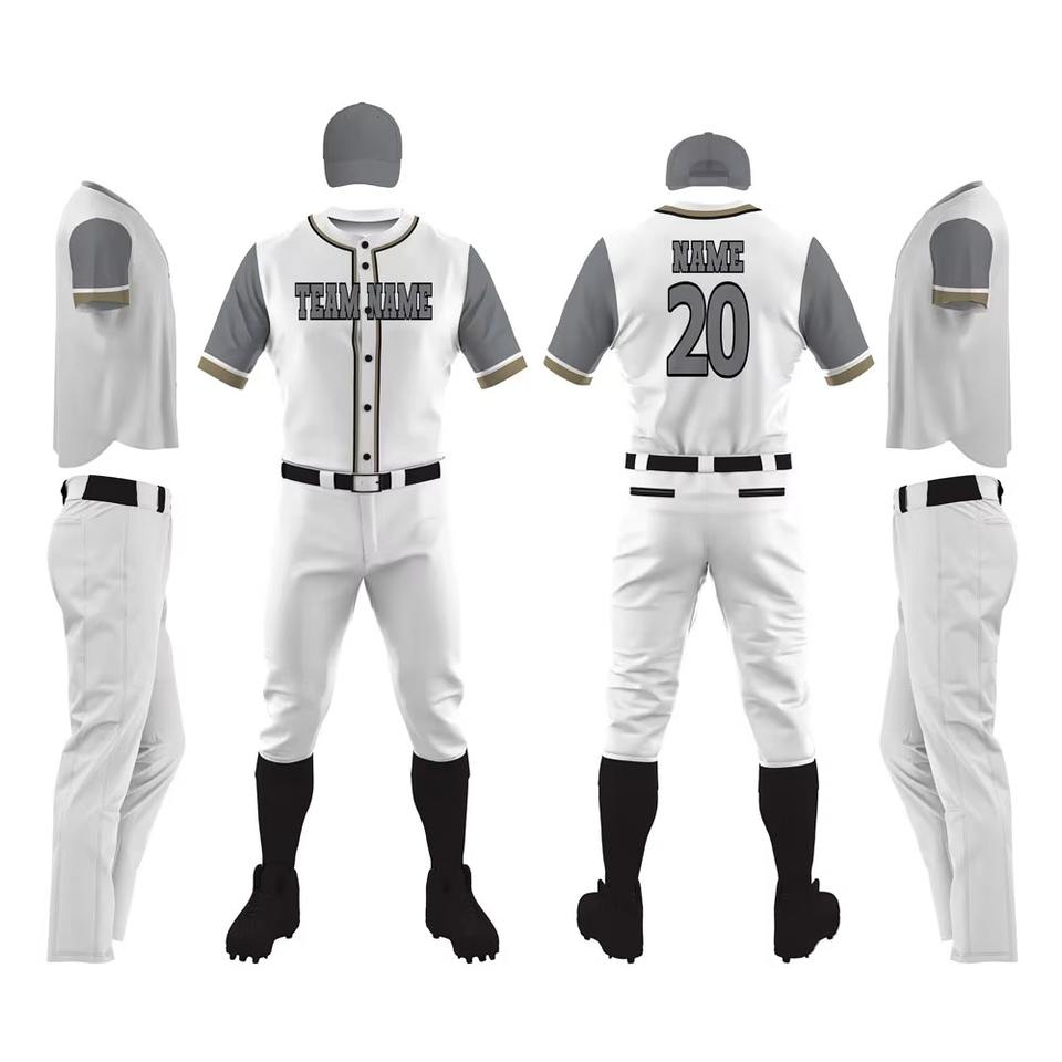ชุดยูนิฟอร์มเบสบอลสั่งทำขายส่ง พร้อมพิมพ์ลายแบบ Sublimation เต็มตัว และปักตราสัญลักษณ์ทีมโดยผู้ผลิต