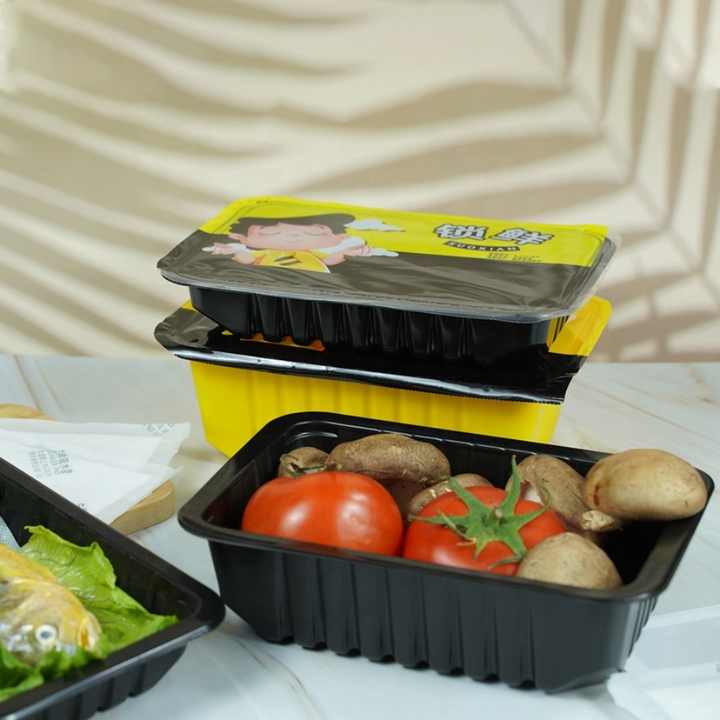ถาดพลาสติก PP แบบใช้แล้วทิ้ง ย่อยสลายได้เองตามธรรมชาติ รูปทรงสี่เหลี่ยมผืนผ้า สำหรับบรรจุอาหารแช่แข็ง ผลไม้ เนื้อสัตว์ เค้ก รับผลิตตามสั่งขายส่ง