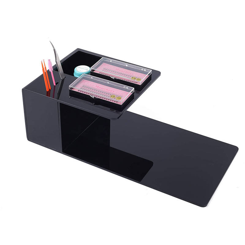 ชั้นวางอะคริลิคสีดำพิมพ์ลายซิลค์สกรีนสำหรับต่อขนตา ชั้นวางเครื่องสำอางแบบกำหนดความหนาได้ตามต้องการ ขายส่ง